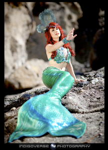 I am drawn to anything having to do with mermaids… any movie with a mermaid in it, you can bet I’ve seen it! I’m currently reading a book that TailMan, Thom Shouse, gave to me as a gift: a novel by Kelly Reno called ‘Misadventures and Merfolk.” (And looking forward to reading yours next by the way!) I’ve familiarized myself with all the tail makers online, and been blessed to be able to participate in photo shoots wearing tails created by some of the most renowned tail makers, Thom the TailMan and The Mertailor. One of the shoots was an incredible project for JoEllen Elam, the designer behind FireFly-Path.net, and Indigo Verse, her incredible photographer. Ever since I’ve fantasized about owning one of those incredible, realistic looking mermaid tails! (Hopefully by the Mercon I’ll be able to make that happen!) I plan photo shoots around the concept of mermaids, I sell mermaid inspired accessories through my Etsy shop, The Siren’s Grotto, have some upcoming video shoots planned as both Ariel and an original mermaid, and sometimes even write music inspired by maids of the sea! But I would be lying if I claimed to love any other mermaid more than everyone’s favorite siren, Ariel. The Little Mermaid was the doorway for me for all things in the mermaid/merfolk community.