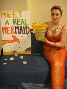 I understand that you educate people about ocean related ecology issues. Can you tell me about this? I am a student teacher and one of the things I do with Raina is work on ways to make connections to our local curriculum. Where I am from becoming a teacher takes two degrees and I am in my sixth year of university with one more to go so I’ve had a LOT of time to decide what I feel is important. On a local level we have the second biggest harbour in the world and it’s had raw sewage pumped into it for 100 years! We recently installed a treatment plant that broke shortly after and is hopefully back up and running for good. We do a lot to create a green environment on land and despite the city campaigns to raise awareness of the importance of not dumping things down the drains that lead to the harbour people really do have a mentality of “it’s not a big deal the sea will wash it away”. This is a mindset I really want to break. In addition as the East Coast of Canada is central with fishing and so much livelihood is based around it I think it’s essential people understand the devastation that can be caused to the sea and our way of life from over fishing and inappropriate fish farms. Everything comes back to the ocean. Everything originates from the ocean. People need to understand that cycle and respect the balance. It’s easy to ignore an add on TV or a sign on the street… it’s not easy to ignore a beautiful mermaid begging you to take care of her home!