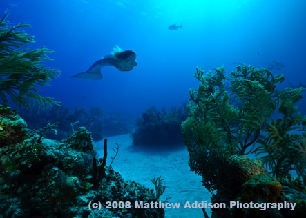 I was working in an office job from 9-5 and on-call 24 hours a day. I found it challenging because all I could do was dream of diving. Lunch breaks were spent watching underwater footage online and dreaming myself into those magical aquatic places, and every moment outside of work possible was spent underwater. As much as I LOVED life in a cubicle, I decided to quit my “real job” to pursue my dreams in the ocean. With visions dancing in my head of educating children about ocean conservation, underwater exploration and water safety, exotic travel and meeting other ocean-minded people, I headed tail-first into my dreams. Since I was a competitive swimmer, avid SCUBA diver and a freediver (breath hold diver) long before I became a mermaid, I fell naturally into the role once I made my mind up to do it. Thanks to lengthy and dedicated training I can hold my breath for over 5 minutes and dive to 100 feet down and back on a single breath of air….almost deeper than I’ve SCUBA dived! I have yet to hit my limits as a freediver, which is very exciting when it comes to mermaiding. I feel more and more like a “real” mermaid the better my diving gets. I am a mermaid with a message from the oceans….and hopefully the realistic nature of my mermaid appearance captures people’s attention long enough to listen and become as enchanted with the sea as I am.