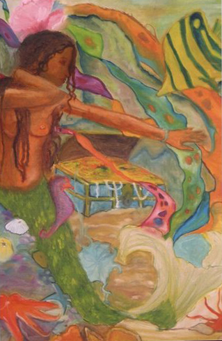 I understand that Pearl and the Beard is very influenced by mermaids as well as by other aquatic entities. Can you tell me in what ways mermaids exert this influence?
