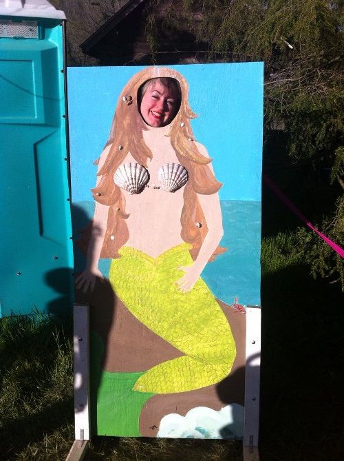 So this weekend I was at Spoutwood Farm’s May Day Faerie Festival, out in the faerie-filled boondocks of Glen Rock, Pennsylvania. Imagine: you maneuver along twisting pathways and up and down sprawling bright green hills and under ribboned arches and across miniature wooden bridges, while about 500000 messy-haired red-cheeked children in fairy wings scamper alongside elaborate evil queens and sparkling fairies and leaf-covered green men, not to mention all kinds of artisans and artists and bellydancers and other magical creatures. Of course, there were many many mermaids, on crowns and cups and plaques and necklaces, on “Mermaid Island,” in song (Jennifer Cutting’s Ocean performed the classic sea balled “The Mermaid”), in the gorgeous lounging mermaid dolls of Susan Snodgrass, and even at this glamorous mermaid posing station right next to the glittering (in spirit) portapotties: